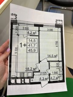 Квартира расположена на 5-ом этаже, современная европланировка. Кухня-гостиная 18.2 кв м позволила с удобством разместить и кухонный гарнитур ( остаётся новому собственнику в подарок), и уютную зону гостиной. Довольно большая спальня 14.5 кв м, большой совмещённый санузел 4.7 кв м .