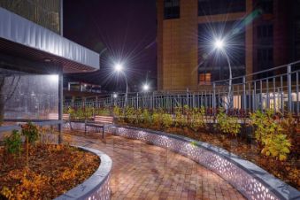 Очень красивый, ухоженный закрытый двор. Ландшафтный дизайн придомовой территории, разноуровневая подсветка в вечернее время притягивают взгляд и создают атмосферу респектабельности.