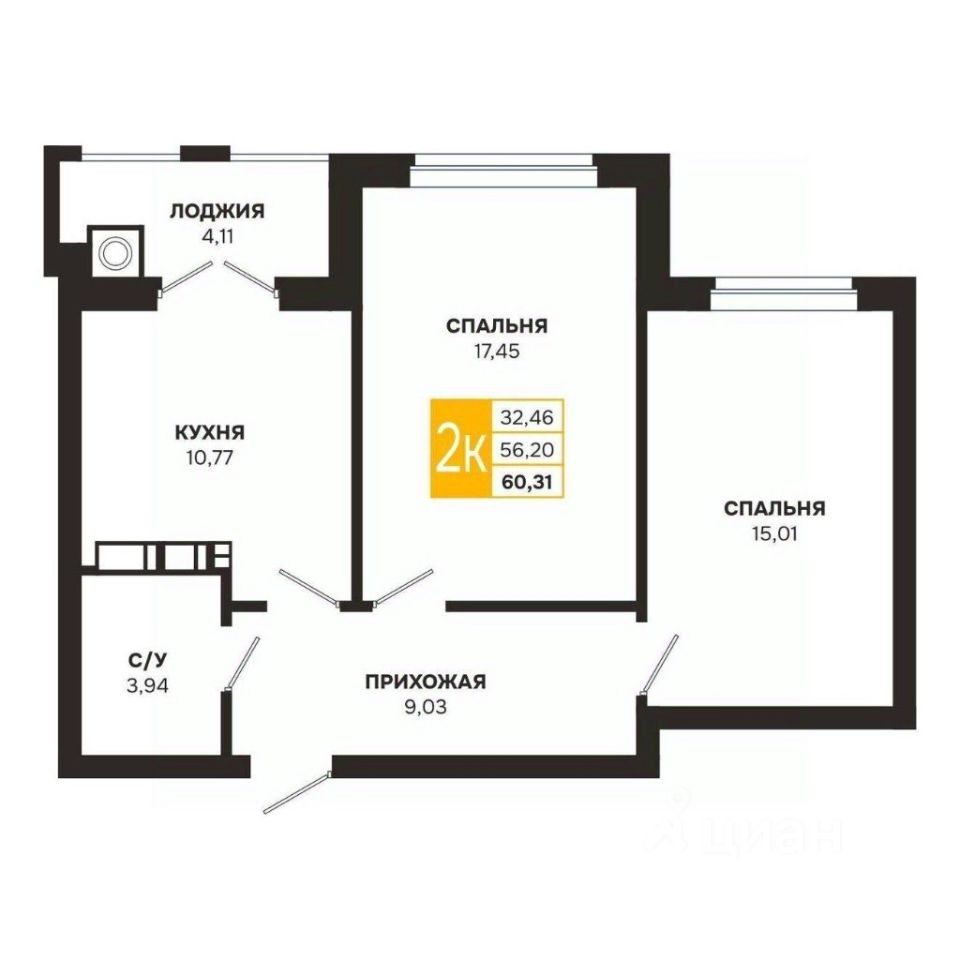 Общая площадь60,3 м²