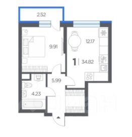 Площадь: 34,82 м²