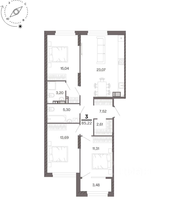 Общая площадь85,22 м²