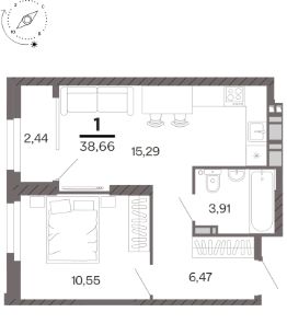 Общая площадь38,66 м²