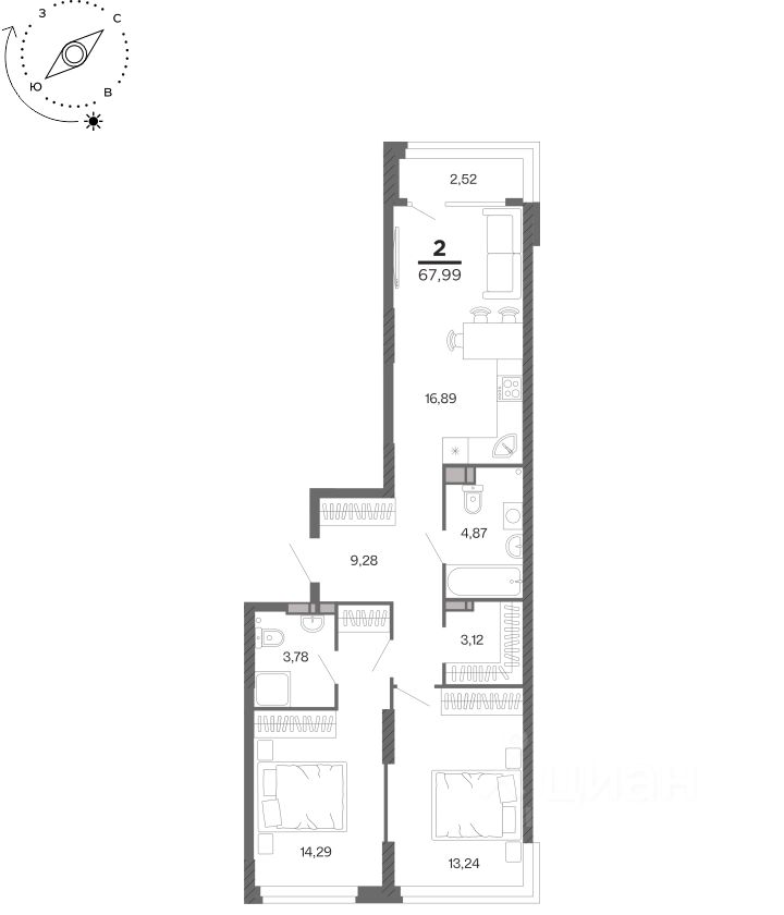 Общая площадь67,99 м²