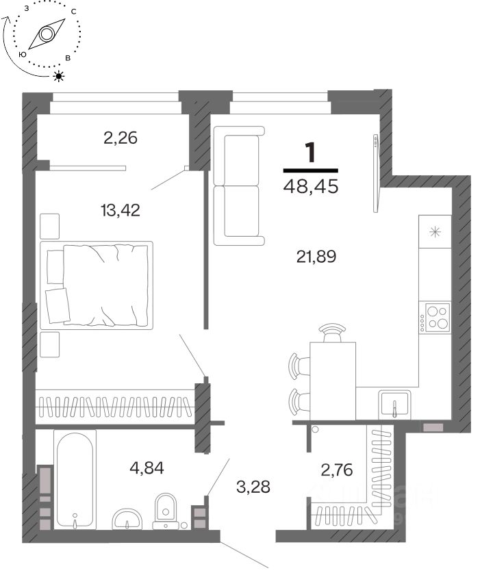 Общая площадь48,45 м²