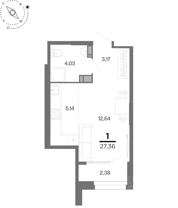 Общая площадь27,36 м²