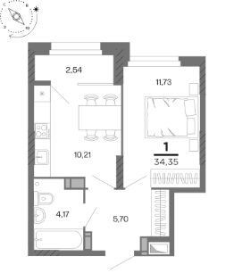 Общая площадь34,35 м²