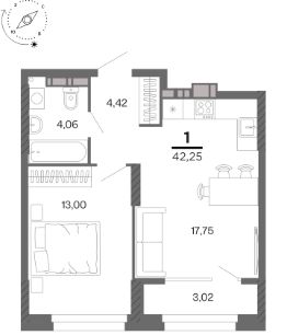 Общая площадь42,25 м²