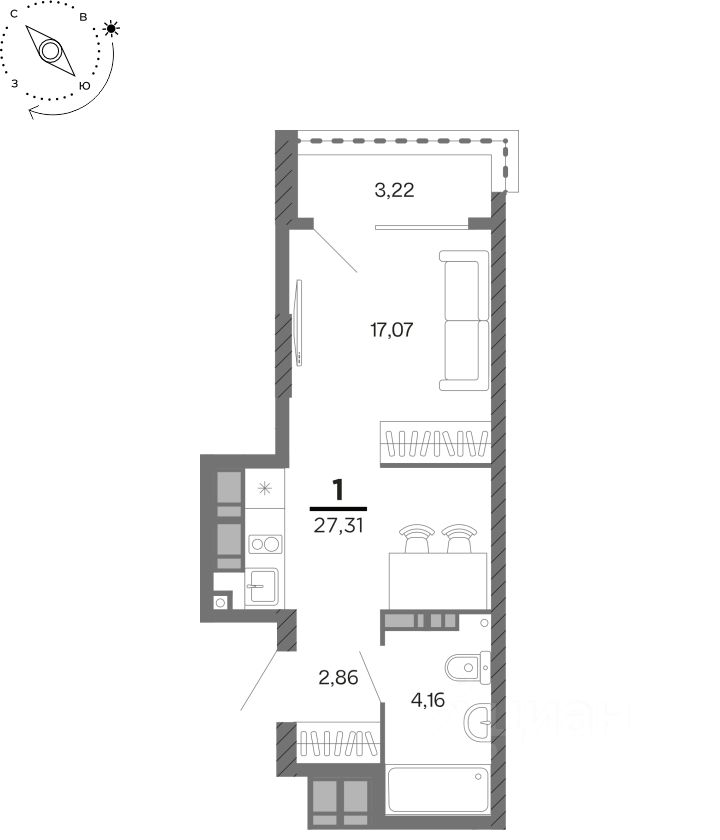 Общая площадь27,31 м²