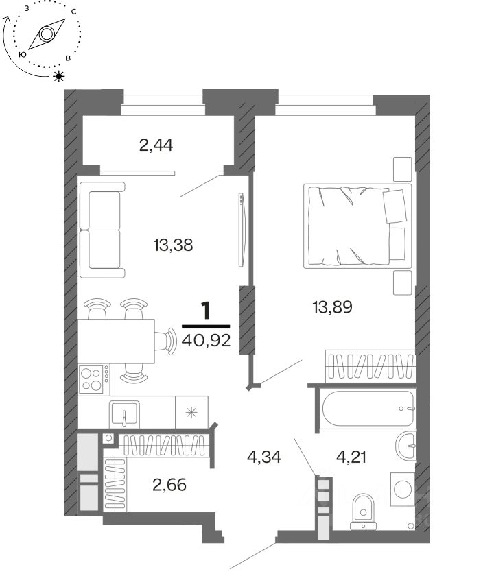 Общая площадь40,92 м²