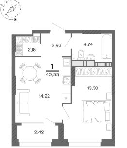 Общая площадь40,55 м²