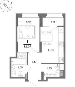 Общая площадь32,97 м²