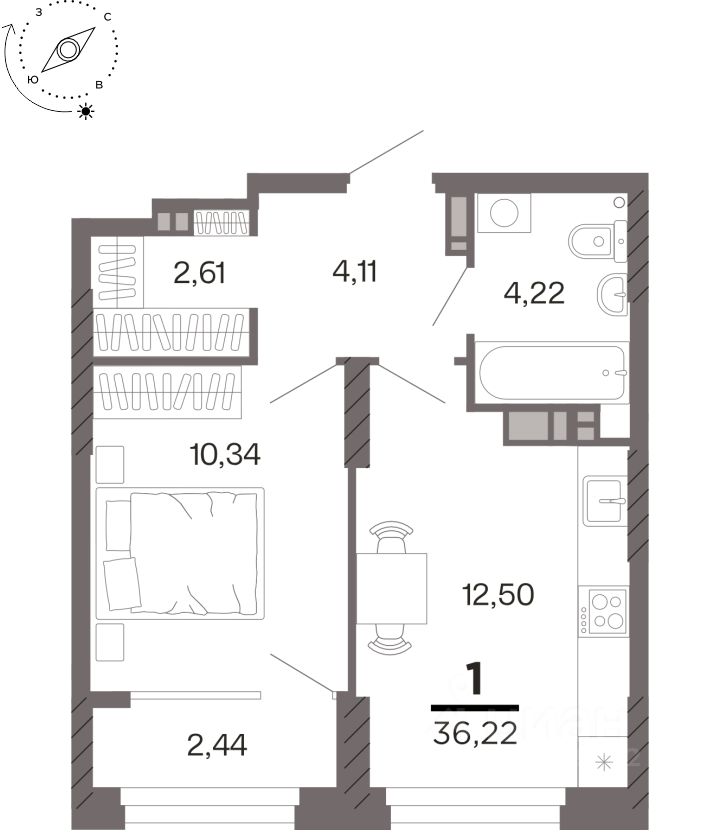 Общая площадь36,22 м²
