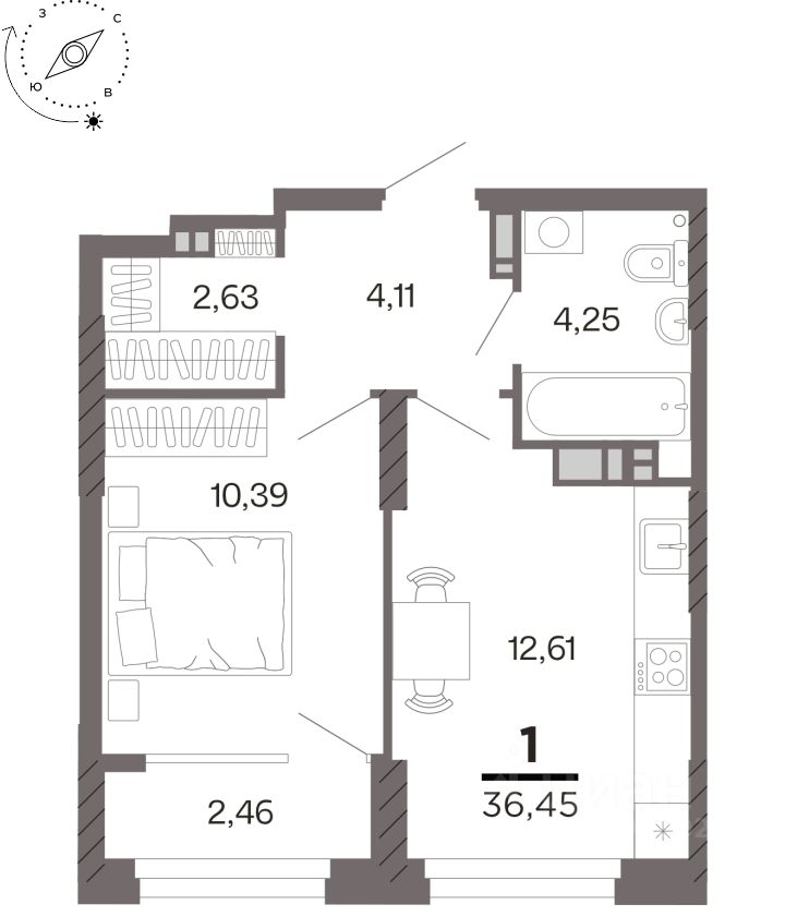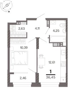 Общая площадь36,45 м²