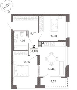 Общая площадь54,68 м²