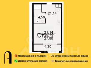 Квартира-студия 27.88м² в ЖК "Радости жизни" от застройщика "Единство"