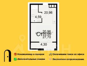 Квартира-студия 27.70м² в ЖК "Радости жизни" от застройщика "Единство"