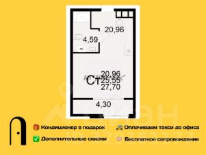 Квартира-студия 27.70м² в ЖК "Радости жизни" от застройщика "Единство"