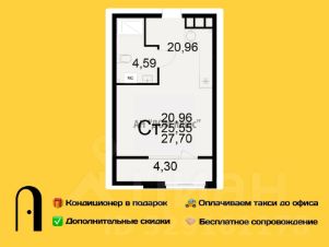 Квартира-студия 27.70м² в ЖК "Радости жизни" от застройщика "Единство"