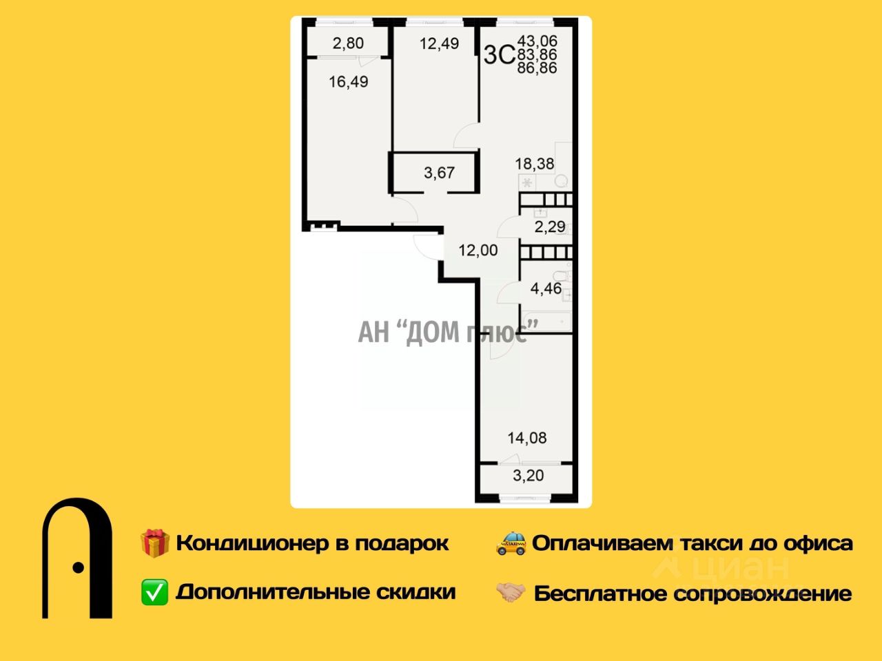 Трехкомнатная квартира 86.86м² в ЖК "Радости жизни" от застройщика "Единство"