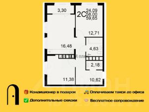 Двухкомнатная квартира 59.65м² в ЖК "Радости жизни" от застройщика "Единство"