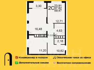 Двухкомнатная квартира 59.47м² в ЖК "Радости жизни" от застройщика "Единство"