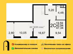 Двухкомнатная квартира 47.34м² в ЖК "Радости жизни" от застройщика "Единство"