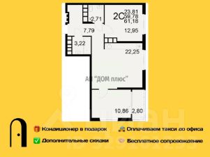 Двухкомнатная квартира 61.18м² в ЖК "Радости жизни" от застройщика "Единство"