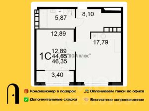 Однокомнатная квартира 46.35м² в ЖК "Радости жизни" от застройщика "Единство"