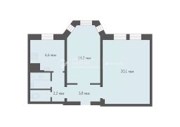 Высота потолков в 3 метра и просторные комнаты (общая площадь — 49,5 кв. м, комнаты 20,1 и 13,3 кв. м) создают ощущение свободы и комфорта.