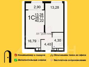 Однокомнатная квартира 40.22м² в ЖК "Радости жизни" от застройщика "Единство"