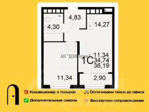 Однокомнатная квартира 36.19м² в ЖК "Радости жизни" от застройщика "Единство"
