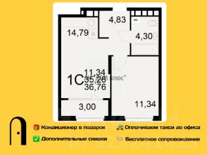 Однокомнатная квартира 36.76м² в ЖК "Радости жизни" от застройщика "Единство"