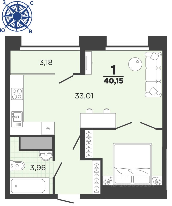 Общая площадь40,15 м²