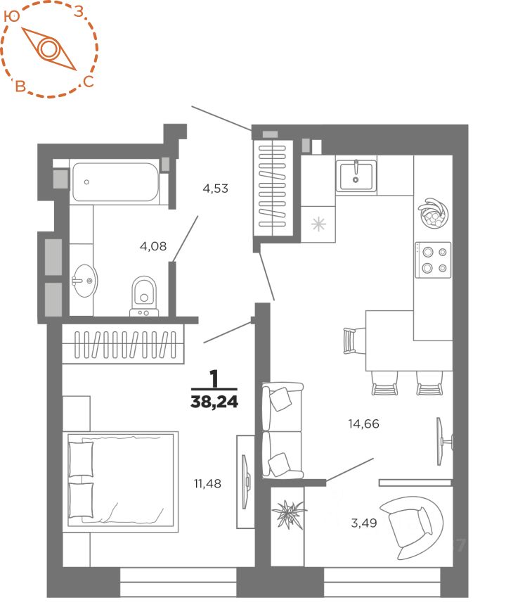 Общая площадь38,24 м²