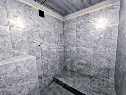 - В санузле установлен теплый пол и принудительная вытяжка, все швы затёрты эпоксидной затиркой,
