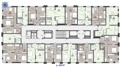 В Жилом комплексе — прозрачные входные группы. Жители видят, что происходит внутри подъезда и снаружи во дворе. Входы сделаны без ступеней и расположены на уровне земли. Предусмотрены сквозные подъезды, которые связывают улицу и двор.