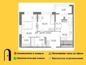Общая площадь56,63 м²