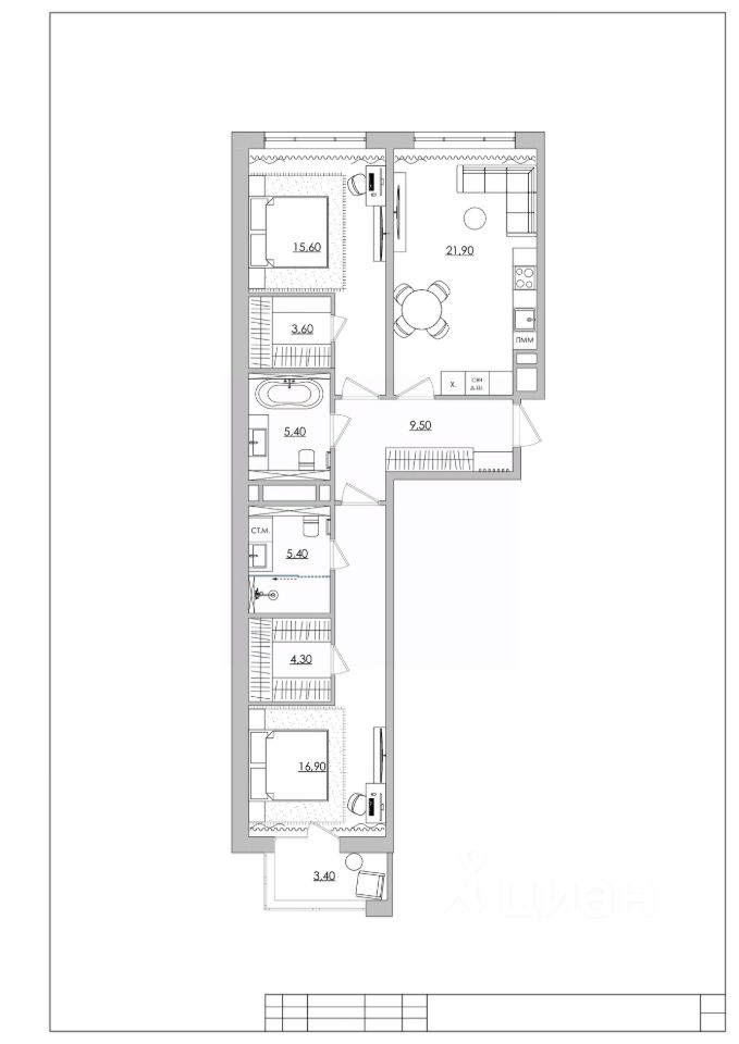 Площадь кухни21,9 м²