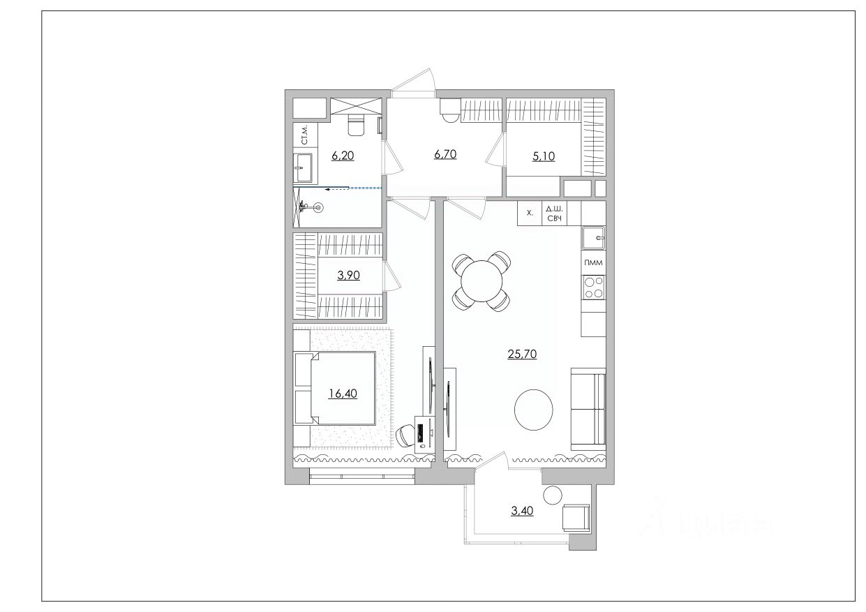 3. Кухня-гостиная 25 м2: пространство для жизни. Это сердце квартиры, объединяющее зону приготовления пищи и зону отдыха.