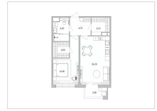 3. Многофункциональность: Кухня-гостиная площадью 25 м2 фактически выполняет роль второй комнаты, превращая квартиру в полноценное пространство для жизни пары или одного человека, ценящего комфорт.