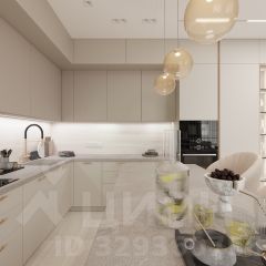 Благодаря правильной геометрии и большой площади, здесь легко выделить технологичную кухонную зону и уютную гостиную для приема гостей или семейных кинопросмотров.