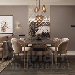 Площадь позволяет организовать островную кухню, большую столовую группу на 6-8 человек и полноценную лаунж-зону с угловым диваном.