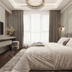 • Уникальность планировки в том, что помимо 5-метровой гардеробной при входе, у спальни есть собственная большая гардеробная. Это мечта любого эстета: одежда, обувь и аксессуары всегда под рукой, упорядочены и скрыты от посторонних глаз.