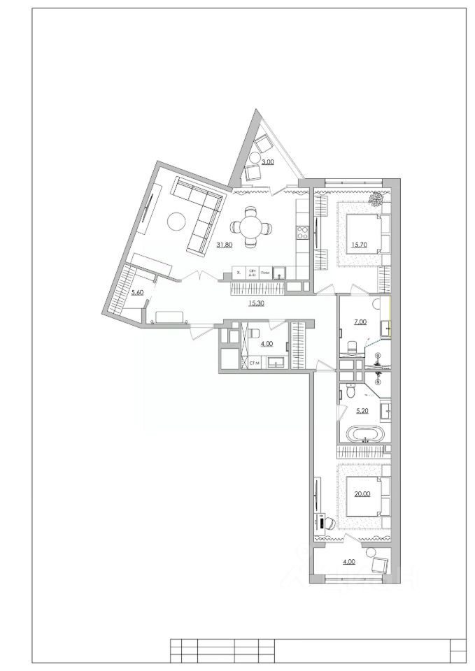 Двухкомнатная квартира 111,6 м2— настоящий архитектурный манифест пространства и приватности. Её планировка выходит за рамки стандартных решений, предлагая владельцам масштаб, сравнимый с загородной резиденцией, но в контексте современного городского жилья.