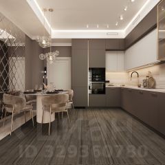 В начале прихожей пространство раскрывается в огромную угловую кухню-гостиную площадью почти 32 м2. Это залитый светом зал, который легко делится на полноценные зоны: