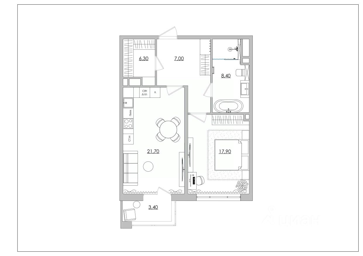 Эта квартира — манифест жизни "для себя". Здесь нет лишних стен, зато есть воздух, свет и объем. Сочетание огромной ванной, полноценной гардеробной и просторных жилых зон делает эту планировку эталоном современного комфорта для одного человека или пары, ценящих статус и личное пространство!