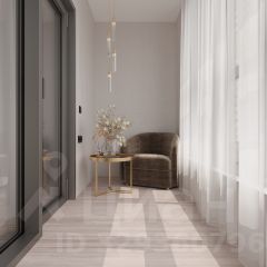 Вас встречает холл площадью 7 м2. Это не узкий проход, а полноценная входная зона, где чувствуется масштаб всей квартиры. Главный секрет чистоты интерьера кроется в примыкающей гардеробной комнате площадью 6,3 м2. Это размер полноценной маленькой комнаты, превращенной в систему хранения.