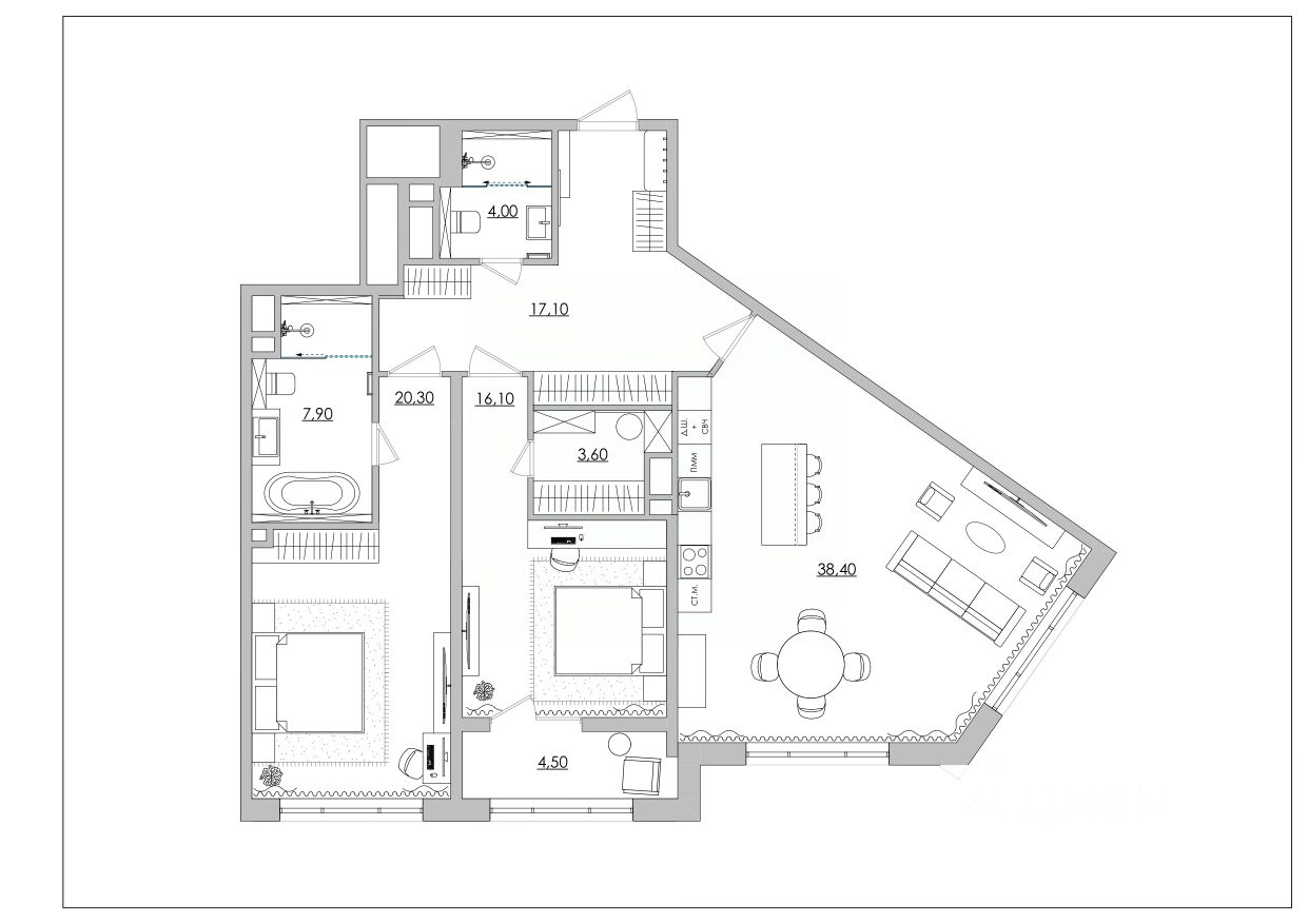 Статусное жилье 111,9 м2, которое по своим масштабам и уровню комфорта приближается к формату частной резиденции.