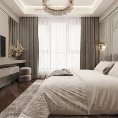 Спальня в этой квартире спроектирована по канонам лучших люксовых апартаментов.