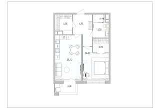 Эта однокомнатная квартира площадью 63,8 м2 — идеальное пространство для человека или пары, которые ценят личный комфорт, эстетику и безупречное зонирование.